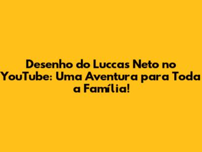 Desenho Do Luccas Neto: Aventura Animada No YouTube!
