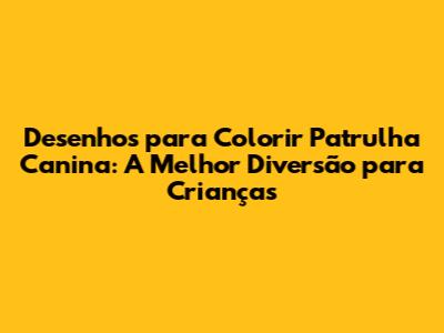 Olá, pessoal! Se você está procurando uma maneira divertida e criativa de entreter seus filhos, sobrinhos ou alunos, você veio ao lugar certo! Prepare-se para embarcar em uma aventura colorida com os desenhos para colorir Patrulha Canina! Essa turma de filhotes corajosos e seus amigos estão prontos para trazer muita alegria e aprendizado para as crianças. Neste artigo, vamos explorar o universo dos desenhos para colorir da Patrulha Canina, mostrando como eles podem ser uma atividade fantástica para estimular a imaginação, a coordenação motora e o desenvolvimento infantil. Vamos mergulhar nesse mundo de cores e diversão juntos?