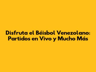 Disfruta El Béisbol Venezolano: Partidos En Vivo Y Mucho Más