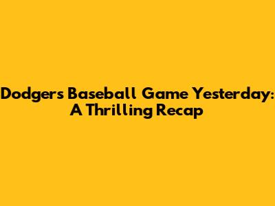 Dodgers Baseball Game Yesterday: A Thrilling Recap