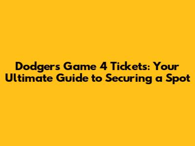 Dodgers Game 4 Tickets: Your Guide To Securing A Spot