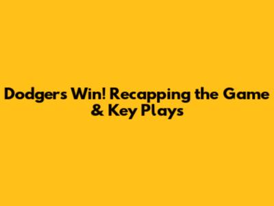 Dodgers Win! Recapping The Game & Key Plays