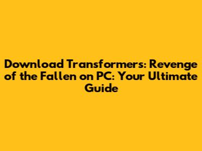 Hey gaming enthusiasts! Are you ready to dive back into the explosive world of giant robots and epic battles? Well, you're in luck! This article is your ultimate guide on how to download and play Transformers: Revenge of the Fallen on your PC. We'll cover everything from where to find the game, system requirements, and even some tips and tricks to dominate the battlefield. So, buckle up, because we're about to transform your gaming experience!
