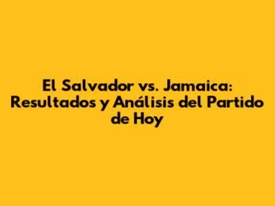 El Salvador Vs. Jamaica: Resultados Y Análisis Del Partido De Hoy