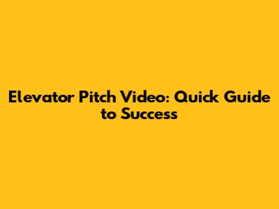 Elevator Pitch Video: Quick Guide To Success