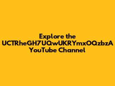 Explore The UCTRheGH7UQwUKRYmxOQzbzA YouTube Channel