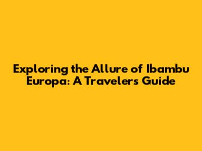 Exploring The Allure Of Ibambu Europa: A Traveler's Guide