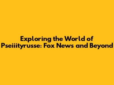 Exploring The World Of Pseiiityrusse: Fox News And Beyond