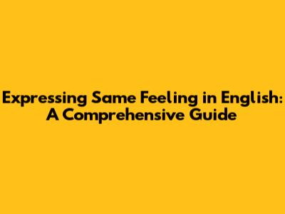 Expressing 'Same Feeling' In English: A Comprehensive Guide