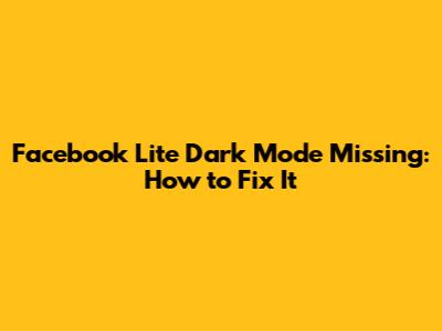 Facebook Lite Dark Mode Missing: How To Fix It