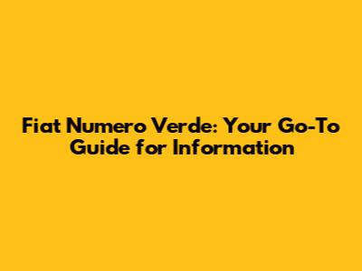 Fiat Numero Verde: Your Go-To Guide For Information