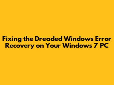Fix Windows Error Recovery On Windows 7 PCs