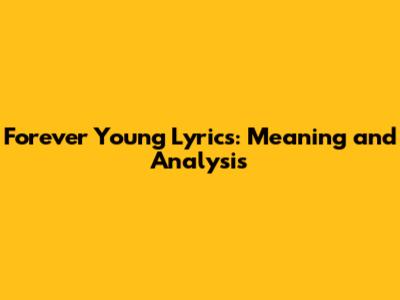 Forever Young Lyrics: Meaning And Analysis
