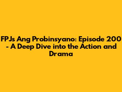 Hey guys! Welcome back to our ultimate guide for FPJ's Ang Probinsyano Episode 200. If you're a loyal fan of Cardo Dalisay and his never-ending fight for justice, you're in for a treat! This episode was a rollercoaster of emotions, packed with intense action, nail-biting suspense, and those signature dramatic moments that keep us glued to our screens. We're going to break down everything that went down, from the biggest plot twists to the most memorable scenes. So grab your popcorn, settle in, and let's relive the excitement of Ang Probinsyano Episode 200!
