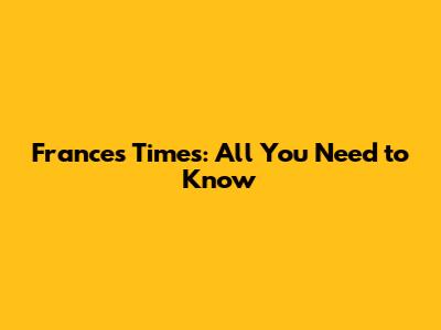 France's Times: All You Need To Know