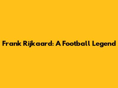 Frank Rijkaard: A Football Legend