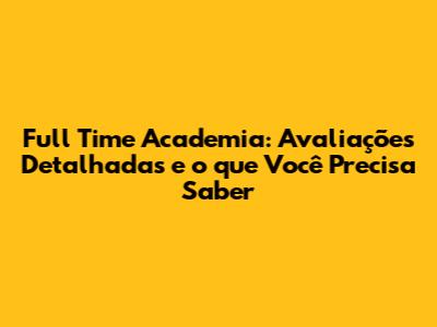 O Que Dizem as Avaliações sobre a Full Time Academia?