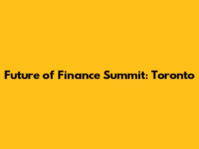 Future Of Finance Summit: Toronto
