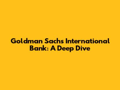 Goldman Sachs International Bank: A Deep Dive
