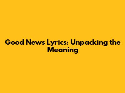Good News Lyrics: Unpacking The Meaning