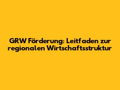 GRW Förderung: Leitfaden Zur Regionalen Wirtschaftsstruktur