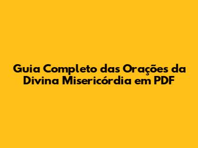 Guia Completo Das Orações Da Divina Misericórdia Em PDF