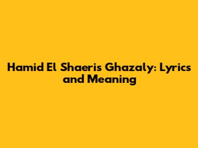 Hamid El Shaeri's Ghazaly: Lyrics And Meaning