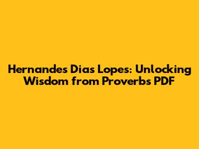 Hernandes Dias Lopes: Unlocking Wisdom From Proverbs PDF