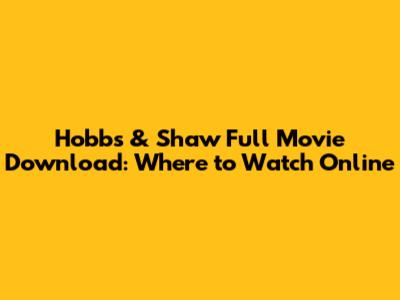 Hobbs & Shaw Full Movie Download: Where To Watch Online