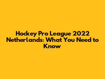 Hockey Pro League 2022 Netherlands: What You Need To Know