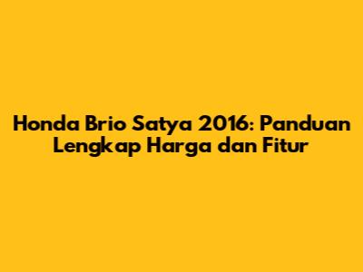 Honda Brio Satya 2016 adalah pilihan yang menarik bagi kalian yang mencari mobil bekas yang irit, lincah, dan terjangkau. Dengan memahami harga pasaran, faktor-faktor yang memengaruhi harga, serta fitur-fitur unggulan, kalian dapat membuat keputusan yang tepat dalam memilih Brio Satya 2016 bekas. Jangan lupa untuk melakukan pengecekan secara menyeluruh dan meminta bantuan dari ahli jika diperlukan. Dengan persiapan yang matang, kalian akan mendapatkan mobil impian dengan harga yang sesuai.
