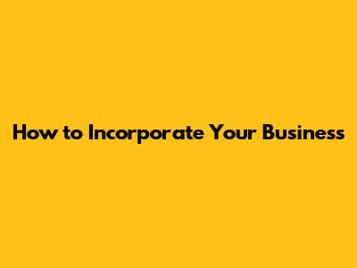 How To Incorporate Your Business