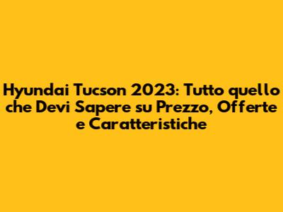 Allora, la Hyundai Tucson 2023 è la scelta giusta per voi? Dipende! La Tucson 2023 è un SUV versatile, con un design accattivante, tecnologia all'avanguardia e una vasta gamma di motorizzazioni. È ideale per chi cerca un'auto spaziosa, sicura e confortevole, adatta sia alla guida in città che ai viaggi più lunghi. Il prezzo della Tucson 2023 è competitivo nel segmento dei SUV compatti, ma può variare a seconda della versione, degli optional e delle offerte. È fondamentale fare una ricerca accurata, confrontare i prezzi e chiedere un preventivo personalizzato per trovare l'offerta più adatta alle vostre esigenze e budget. Le caratteristiche della Tucson 2023 sono molteplici. Il design moderno e accattivante, gli interni spaziosi e confortevoli, la tecnologia all'avanguardia e i sistemi di assistenza alla guida (ADAS) la rendono un'auto completa e sicura. Le diverse opzioni di motorizzazione, tra cui benzina, diesel, ibride ed ibride plug-in, vi permettono di scegliere la soluzione più adatta alle vostre esigenze di guida e di efficienza. Per trovare le migliori offerte, è importante tenersi informati, visitare diverse concessionarie, negoziare e valutare attentamente le offerte di finanziamento. Non dimenticate di sfruttare gli incentivi statali e i portali online specializzati in offerte auto. In definitiva, la Hyundai Tucson 2023 è un'ottima scelta per chi cerca un SUV compatto di alta qualità. Se siete alla ricerca di un'auto versatile, sicura e confortevole, con un design accattivante e tecnologia all'avanguardia, la Tucson 2023 potrebbe essere l'auto giusta per voi. Ma ricordate, la scelta finale dipende dalle vostre esigenze personali, dal vostro budget e dalle vostre preferenze di guida. Quindi, fate la vostra ricerca, confrontate le offerte e scegliete la Hyundai Tucson 2023 che fa per voi! Buona fortuna con la vostra ricerca e buona guida!