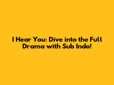 Where to Watch I Hear You with Sub Indo: Your Ultimate Guide