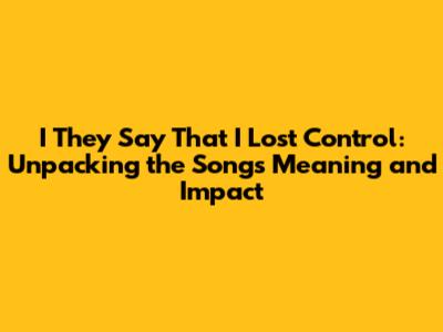 I They Say That I Lost Control: Song Meaning & Impact
