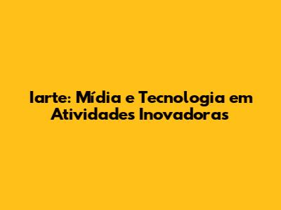 Iarte: Mídia E Tecnologia Em Atividades Inovadoras