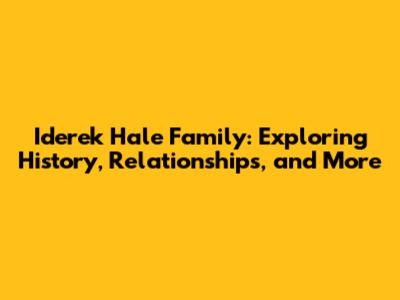 Iderek Hale Family: Exploring History, Relationships, And More
