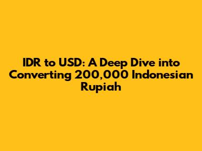 Hey there, finance enthusiasts! Ever wondered about converting Indonesian Rupiah (IDR) to United States Dollars (USD)? Specifically, what's 200,000 IDR worth in USD? Well, you're in the right place! We're going to dive deep into this conversion, exploring the current exchange rates, the factors that influence them, and how you can get the best deal when making the conversion. Whether you're a traveler planning a trip to the US, an investor looking to diversify your portfolio, or just curious about the global financial market, this guide is for you. Let's get started!