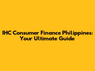 IHC Consumer Finance Philippines: Your Guide