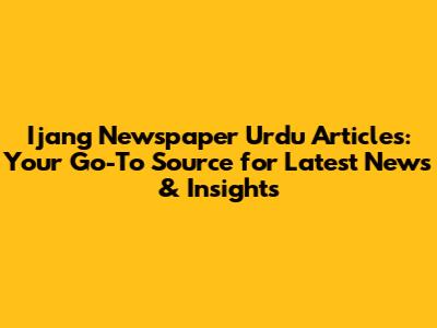 Ijang Newspaper Urdu Articles: Latest News & Insights
