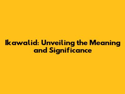 Ikawalid: Unveiling The Meaning And Significance