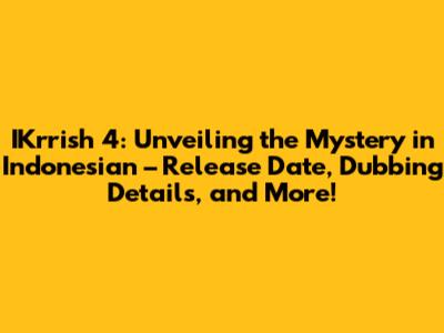 IKrrish 4: Indonesian Dub, Release & More