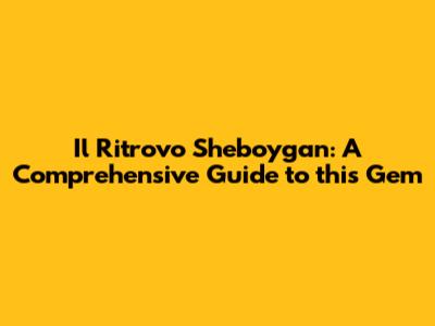 Il Ritrovo Sheboygan: Your Ultimate Guide
