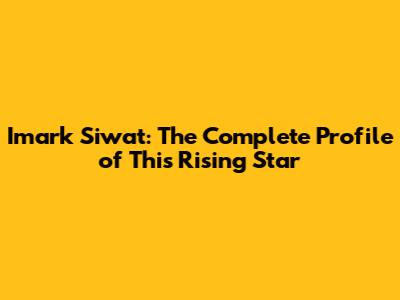 Imark Siwat: The Complete Profile Of This Rising Star