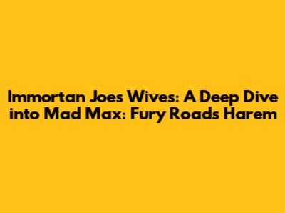 Hey guys, let's talk about Immortan Joe's wives in Mad Max: Fury Road. These women are far more than just pretty faces in a post-apocalyptic wasteland; they're central to the plot and represent a powerful symbol of resistance against Immortan Joe's tyrannical rule. You might be wondering, "Who are Immortan Joe's wives, and why are they so important?" Well, buckle up, because we're about to unpack their story, their motivations, and their crucial role in shaking up the world of Mad Max. These aren't your typical damsels in distress, folks. They are brave, resourceful, and their escape sparks the entire explosive narrative of the film. Understanding their plight is key to understanding the heart of Fury Road.