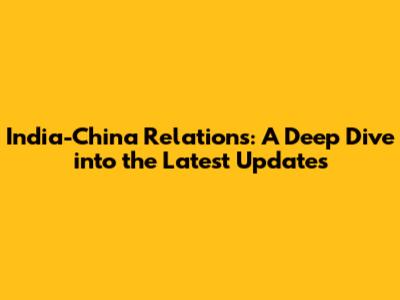 India-China Relations: Latest Updates