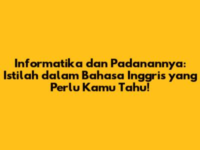 Hey guys! Jadi, kalian penasaran kan dengan istilah-istilah dalam dunia informatika yang sering banget kita temui, dan apa sih padanannya dalam bahasa Inggris? Nah, pas banget nih, artikel ini bakal ngebahas tuntas tentang hal itu. Kita akan menyelami dunia keren informatika, mulai dari yang paling dasar sampai yang agak kompleks, lengkap dengan terjemahannya dalam bahasa Inggris. Tujuannya apa? Biar kalian makin jago, makin paham, dan tentunya, makin pede ngobrolin teknologi dengan siapa aja. Yuk, kita mulai!