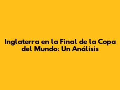 Inglaterra En La Final De La Copa Del Mundo: Un Análisis