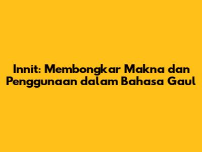 Innit adalah sebuah kata yang telah merambah dunia bahasa gaul dan percakapan sehari-hari, terutama di kalangan anak muda. Tapi, apa sebenarnya innit itu? Artikel ini akan membahas secara mendalam mengenai asal-usul, makna, serta bagaimana cara penggunaan innit dalam berbagai konteks. Mari kita selami lebih jauh tentang fenomena bahasa gaul yang satu ini!