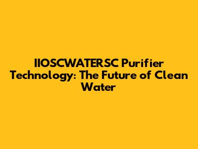 Innovative Water Purification With IIOSCWATERSC Tech